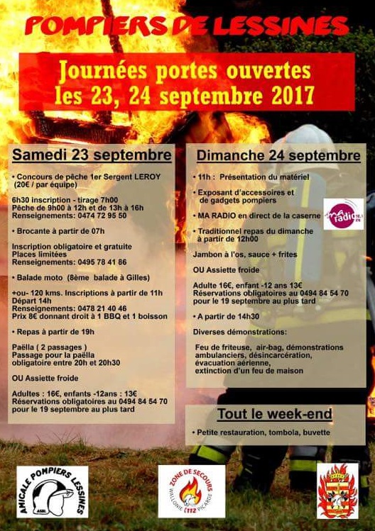 C’est le we prochain (très chargé) qu’auront lieu les portes ouvertes des pompiers de Lessines.