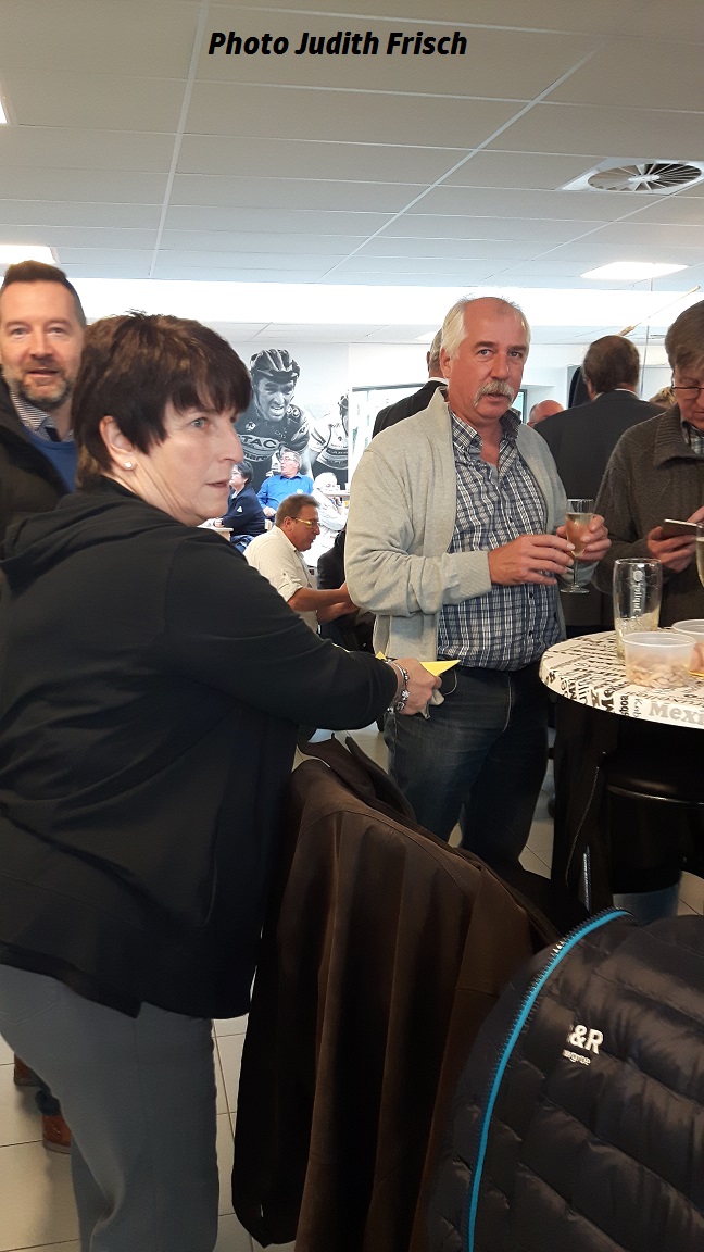 Il y avait du monde dans cet espace tout consacré à Claudy. Vous le savez maintenant, un coin bar est aménagé aux couleurs du liseret de champion du monde et d’un poster mural géant en tenue HITACHI de notre grand champion local. Un bien bel endroit pour tenir de tels événements.