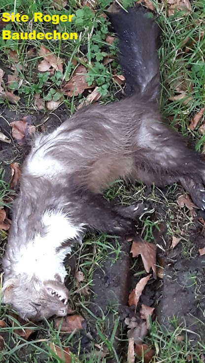 Ce matin, petite promenade pédestre à travers notre superbe région boisée. Face au château de Bois-de-Lessines, un animal couché sur le flanc. Mort. Presque de la taille d’un chat. Jamais vu une bestiole pareille alors que cela fait pourtant des décennies que nous parcourons chemins et sentiers de la localité. Après quelques recherches documentaires, il pourrait s’agir d’une Hermine (fouine) ou d’une belette. Nous ne savions pas que nous pouvions encore en voir dans ce bois.