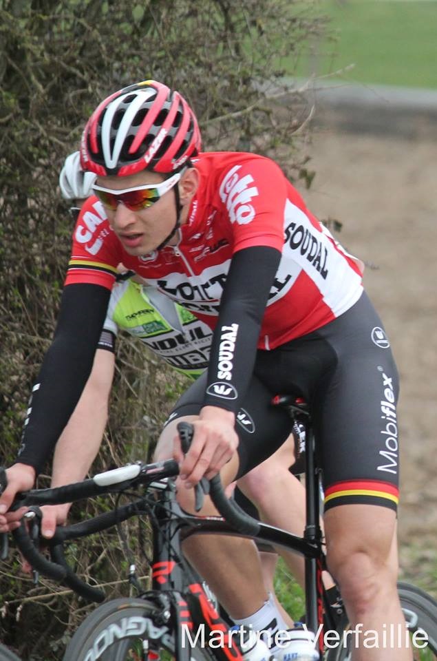 Souvenez-vous, à la même période l’an dernier, il avait fait l’objet d’un entretien avec LCOW. C’est ainsi qu’il s’est fait connaître dans notre coin. Ce coureur de Ploegsteert, âgé de 21 ans est copain avec les MOLLY, DEWINTER, LOY, SIX and c°. Mais lui, il est chez LOTTO SOUDAL alors que les autres étaient majoritairement dans des teams wallons. Son début de campagne a été compliqué mais à partir du Tour SOLIDARNOSC, il a repris du poil de la bête. 30e au général, 4e des monts, 8e des jeunes et 25e aux points. Midden Brabant 13e. Un rien en retrait aux CB U23, 74e. Puis finalement 9e à l’Olympia Tour. Il est vrai également que chez LOTTO U23, il y a de sérieuses pointures. On l’a constaté durant l’hiver. Ils sont plusieurs à être monté chez les pros : MENTEN, PLANCKAERT, LAMBRECHT, … .