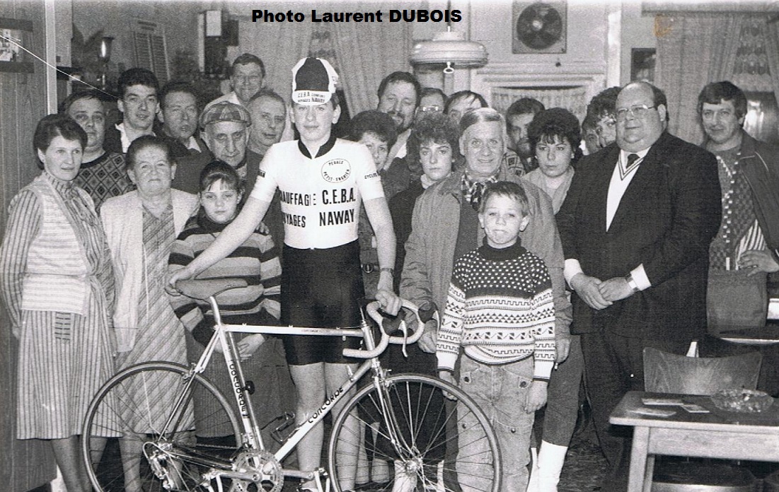 En 1988, Laurent DUBOIS était un vrai bon en devenir. Il roulait pour la Pédale Petit-Enghien, le club qui avait une certaine notoriété dans notre contrée. Des coureurs comme DERNIES, PIETERERENS, FLAMAND, VANDENHENDE, ANSIAU, CRIQUIELION, PLUME, LONGEVAL, FRANCHE, RASMONT, PICOUX, JOURQUIN, … et de nombreux autres y ont fait leurs classes. Il était en concurrence avec le VC ATH, l’Olympic Saint-Ghislain, la Pédale Saint-Martin et Baulers. Sans compter Grammont, Atlas, Deerlijk, Vollezelle, … .