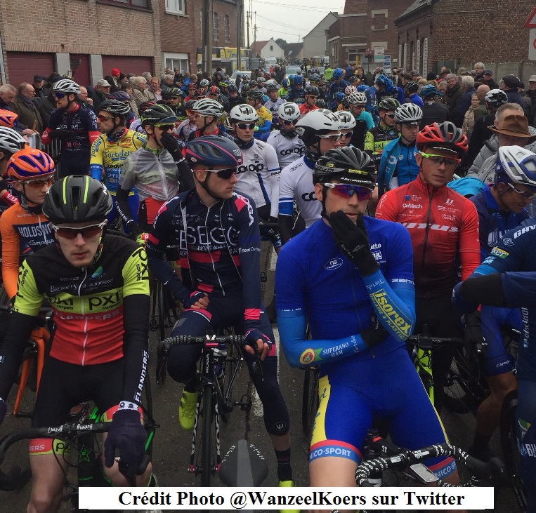 164 km, 148 coureurs, 99 finisseurs, 2 TARTELETTO devant, idem pour les LÉOPARD et pareil pour les WB. BOS de l’équipe SEG arrive détaché. Derrière c’est le sprint du peloton. Très belle performance de MANNAERTS, 2e. DUQUENNOY une nouvelle fois dans le top 10. PONS et son équipier SPENGLER font fort. DEGAND 47e dans le milieu de la troupe. Une bonne surprise JANS, 5e. VALLEE 8e a déjà fait mieux que l’an dernier. Par contre, il y a des déceptions. Le coureur a des objectifs et si celui-là n’en est pas un, il termine au cul du paquet … . A la vue des images, le temps a été infernal toute l’après-midi. Ceci explique peut-être cela pour certains.