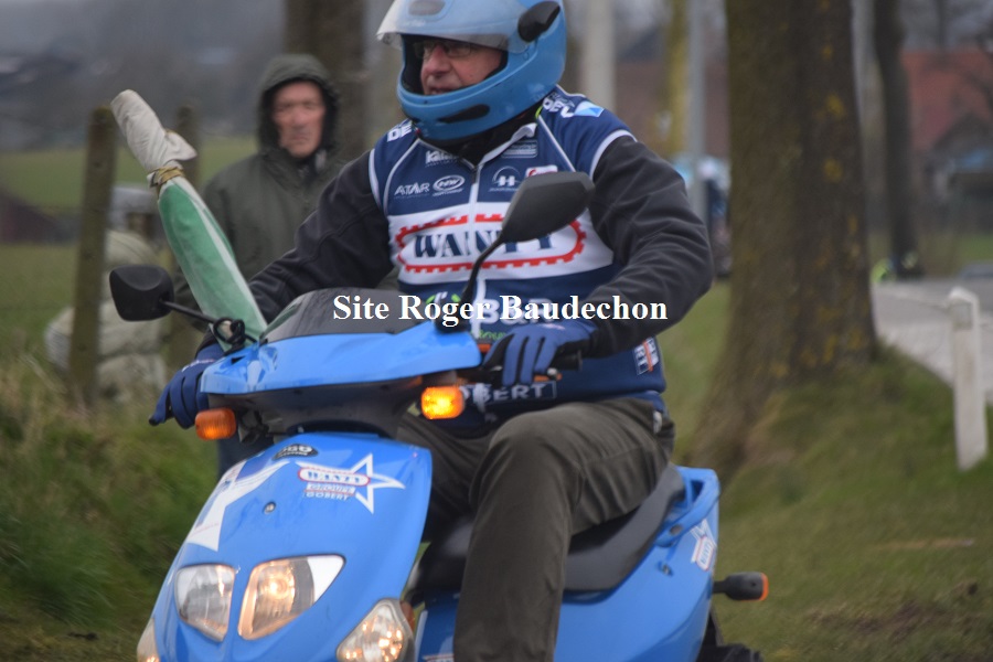 Non, le « TEAM WANTY GOBERT » ne livre pas les musettes en vélomoteur !!! Vous l’avez certainement déjà vu sur toutes les épreuves belges, le long de la route avec un grand panneau « LUC » et la pub de l’équipe. Le fameux « LUC » est partout, se fait voir partout. Quitte à se retrouver sur la chaussée pour bien montrer sa pancarte. Un beau coup de pub pour le team car le gars n’a pas peur de la critique. Quand on aime, on ne compte pas et on se fout bien pas mal des gugusses qui n’en pensent pas moins. Hier, sur le « E3 », il est passé en cyclomoteur à Parike. Un cyclo tout aux couleurs de WANTY. A croire que le relooking a été payé par JF BOURLARD tant il ressemblait aux voitures. Même le casque avait des airs de WANTY. Regardez les gants, c’est pareil. Et puis, il avait ce très fameux panneau en quinconce sur le bras. A son passage au carrefour d’Everbecq, la nuée de spectateurs a crié et applaudi. Pis que si c’était les échappés du jour. C’est qu’il est connu le « Luc ». Vous imaginez faire toute la course sur cet engin !!! Et dimanche, il sera à coup sûr à Gand, à Wevelgem et sur la route. « Luc », c’est un peu le folklore de nos courses. C’est nécessaire. Des personnalités comme lui apporte quelque chose en plus. Ce n’est pas celui qui reste dans son fauteuil à brailler ou à bailler durant trois heures qui apporte quelque chose au cyclisme. Alors man, proficiat en nog veel succès !!!