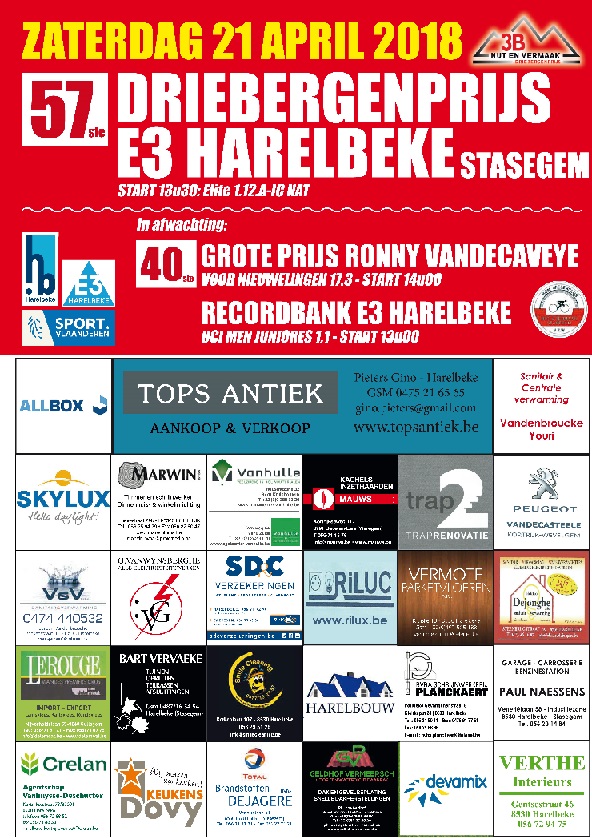 Samedi, nous serons sur un passage du « DrieBergenPrijs ». Une course superbe à ne pas manquer. Pour les lessinois, il faut savoir que tout se déroule dans le périmètre de Kerkem, Louise Marie, … ce n’est pas très loin. En 2017, c’est STEVENS qui l’avait emporté et CASTRIQUE avait fait un top 10. BOUCHER était dans l’échappée. Nous étions dans le Kwaremont. La totalité des régionaux y seront : ASFRA, EFC, BAGUET, DEERLIJK, NATURABLUE, TPELM, TARTELETTO, VANEYCK, VL TECHNICS, … . Il va y avoir du mouvement. Très certainement article et photos en soirée.