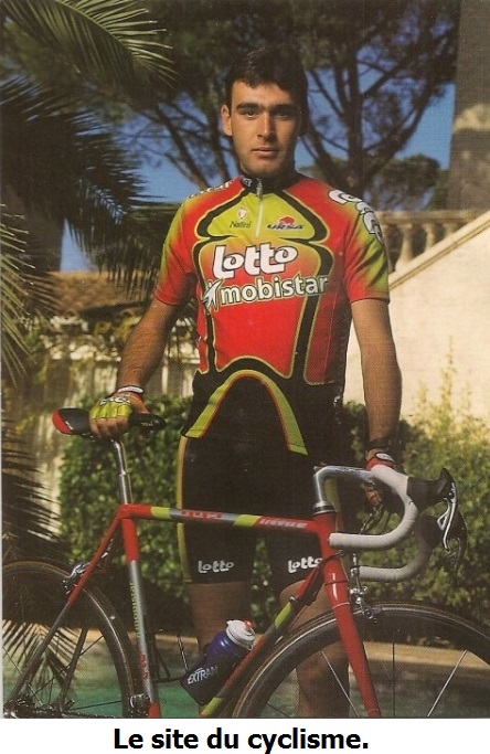 Dans ses équipes, il aura côtoyé : BAGUET, DEMARBAIX, VANDENBROUCKE F, VANDENABEELE, HENNEBERT, HERINNE, FRISON, AERTS, THIJS, VERSTREPEN, DETILLOUX, DEWOLF, MARICHAL, TCHMIL, PLANCKAERT J, LhOIR, AMORISON, VAN IMPE K, les VERBRUGGHE, EECKHOUT, BRANDT, BOONEN, MUSSEEUW, BETTINI, NUYENS, BOUCHER, COMMEYNE, GARDEYN, OMLOOP, BRUYLANDTS, … . Ses résultats ont aussi été très probants : 7e du Tour de la Région Wallonne, 5e du Tour de Cologne, podium aux championnats de Belgique, 3e à Overijse, 8e au GP de l’Escaut, 11e du Dauphiné, 11e d’un général du Tour de France, 9e du Finistère, GP de Francfort 3e, Tour de Romandie 8e, … . Un très bon coureur qui a connu une longue carrière. A 46 ans, il est toujours dans le cyclisme en qualité de DS des jeunes de l’équipe LOTTO U23. On le constate, c’est un fidèle de la marque. Un peu moins connu dans notre région puisque natif d’Herentaels. Merci Mr VAN DE WOUVER de vous rappeler à notre bon souvenir.