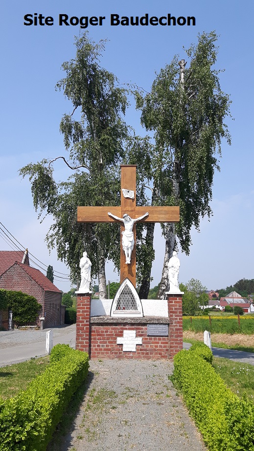 Photo. Le calvaire (Monument fait d’une croix commémorant la Passion du Christ) de la commune de Hellebecq est situé à cinq km de Lessines. C’est un des plus beaux de la région. Mais il y en a un peu partout : Deux-Acren, Everbecq, Labliau, Galmaarden, … . Ne pas confondre avec les petites chapelles. Nous préparons un circuit des calvaires d’une septantaine de km pour dans deux ou trois semaines.