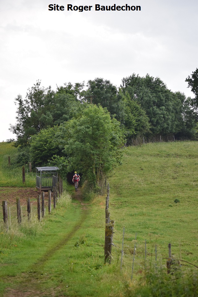 10h30. Le temps de rentrer et de nous diriger vers Ogy en vélo. Départ pour le 17 km. Inscription 3 €, ravito compris. Le marquage est au sol. Un peu à la manière du bleu de méthylène utilisé pour l’enduro. Il fait très chaud, pesant. Le temps est bien à l’orage. Les chemins ne sont pas trempés mais la chaleur est tout autour. La respiration est difficile. C’est même poussiéreux à certains endroits. En bas du Pont Madeleine, nous prenons l’ancienne voie ferrée jusqu’à Lessines. Puis, au moulin de Ghoy, direction le centre du village. Nous empruntons un ancien sentier et un chemin de terre jusqu’au moulin d’Ogy. Remontée pentue pour arriver jusqu’au béton et ensuite, un nouveau beau chemin jusqu’à Sottenière. Retour vers Ghoy via la Laisette. Direction Flobecq et reprise de l’ancienne ligne de la gare flobecquoise jusqu’au Pont Madeleine. Nous confirmons que l’ancienne ligne Lessines-Flobecq n’est pas terminée mais elle est praticable … pour des VTT. Nous confirmons aussi que le petit circuit n’était pas aisé. Plutôt costaud. Mais très bucolique et quasiment sans tarmacadam. Pour ceux qui ont pris les 35,45,55,65 km, cela va chauffer. Si vous avez raté Ogy, n’omettez pas que la « TRANSCOLLINES » c’est le 09/06 à Flobecq. Une bonne occasion pour refaire cette contrée.