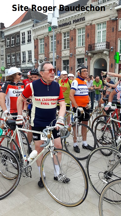 Le parcours n’était pas le même qu’en 2016. L’ancienne voie ferrée n’était pas utilisée contrairement au Ravel. Entre nous, pas terrible. Des grenailles et des trous partout !!! Il fallait faire attention. Et puis, sur ce tronçon, nous n’avons jamais quitté le 32 km/h (nous avions tout de même le compteur pas très vintage) Un guide ouvrait la route. Cela nous a permis de faire la causette avec un bordelais qui va de rando en rando vintage par passion mais aussi pour tenter de vendre ses 50 vélos tous retapés de ses mains. Un connaisseur et un rouleur. Bien que pensionné, il sera encore sur le 160 km le dimanche. Un chouette moment durant lequel nous n’avons pas parlé que de vélo. Il habite Mérignac … vous voyez ??? C’est la localité où se trouve l’aéroport. Et rien que d’y penser, on s’imagine déjà en vacances. Il logeait avec son épouse dans un gîte à Nukerke. Ensuite, après avoir quitté le Ravel, nous sillonnons dans la campagne par de petits chemins tranquilles. Enfin, s’annonce le PATERBERG. On le voit de loin. Un beau mont qui se prend sans élan. Chance, il a une rigole. Malchance, nous n’avons pas un braquet adéquat et par ailleurs, les pignons fixes restent vite … fixés aux pavés. Mi montée, un paquet met pied au sol. Nous aussi. Pas moyen d’aller plus loin. Passé le pan de mur, nous remontons sur la bécane pour terminer en roulant. Tout en haut, Sœur Pater nous donne l’absolution. Ouf, le ravito est juste à nos pieds. Il y avait de tout pour se sustenter. 30 minutes plus tard, nous repartons. LAMONT est franchi puis retour vers le KOPPENBERG par de nombreux petits chemins. Rebelotte, nous arrivons au pied du mont et c’est une nouvelle fois sans élan que nous l’entamons. Trois « anglish » nous talonnent, nous dépassent et … nous découragent. Pied à terre mais touché au vif, nous remontons sur l’engin pour terminer la montée. Les 50 derniers mètres ont été réalisés à l’aveugle. Lunettes opaques pour cause de buée. Tout le monde arrête pour se prendre en selfie. Nous continuons car il est près de 12 h 20 et nous ne sommes pas encore arrivé. Finalement, nous franchissons un petit parc nature qui débouche à proximité du centre d’Audenarde. Une bien belle balade dans une ambiance du feu de Dieu.
