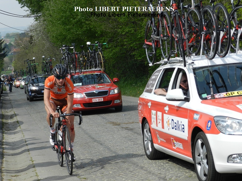 Photo. Timothey DUPONT sur le « GP CERAMI » alors qu’il était encore dans le team de ROUBAIX. C’était en 2014. Dans le BURG à Bois d’Acren. Libert pour l’image.