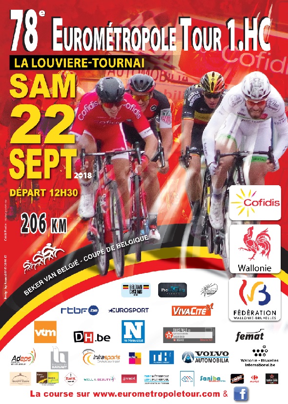La série des belles courses de fin de saison continue. Au tour de l’EUROMETROPOLE. Notre bon vieux « FRANCOBELGE » est toujours bien de la partie. C’est donc le 22 septembre 2018 que l’épreuve se déroulera. En voici le circuit. Vous noterez qu’il évite notre entité. Mais qu’à cela ne tienne, il n’y aura que quelques bornes à faire pour assister au passage des coursiers. Les grosses « buttes » du Pays des Collines sont au programme !!! Pour rappel, cette course est en un seul jour !!!