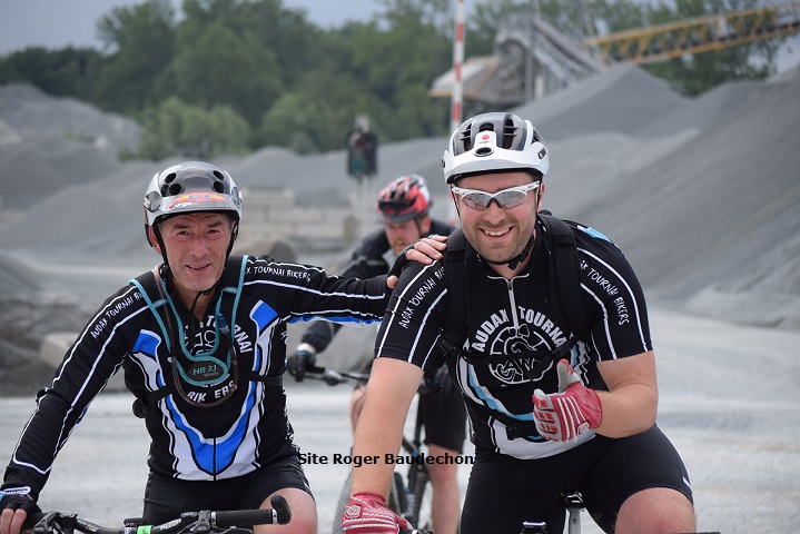 Photo. Les « AUDAX BIKERS TOURNAI » sur l’ULTRA VTT DES CARRIÈRES en 2016. Ce weekend, c’est leur VTT « JUBARU BIKERS ».