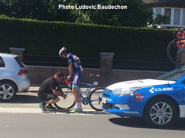 Photo. 2016, passage du « Tour de Wallonie » sur le Boulevard lessinois. Ludo était présent pour immortaliser le changement de roue de Kenny DEHAES. Etape 2 : Saint-Ghislain/Le Roeulx.