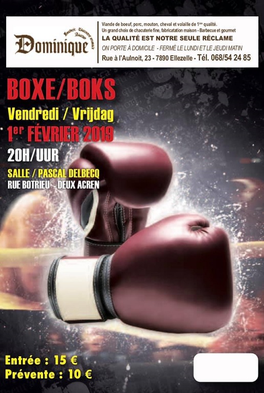 Vendredi 01 février 2019, c’est dans la salle « Pascal DELBECQ » à Deux-Acren que le « SPORTS ET LOISIRS ACRENOIS ASBL » organise un gala de boxe. Sa branche « BOXING CLUB ACRENOIS » sera confrontée aux membres du « BOXING CLUB LESSINOIS ».