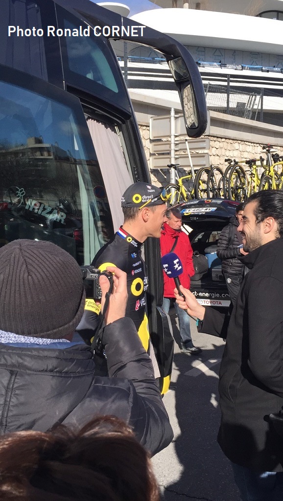 Photo. TERPSTRA à l’entretien avec EUROSPORT. « DIRECT ENERGIE » était déjà sous le feu des projecteurs.
