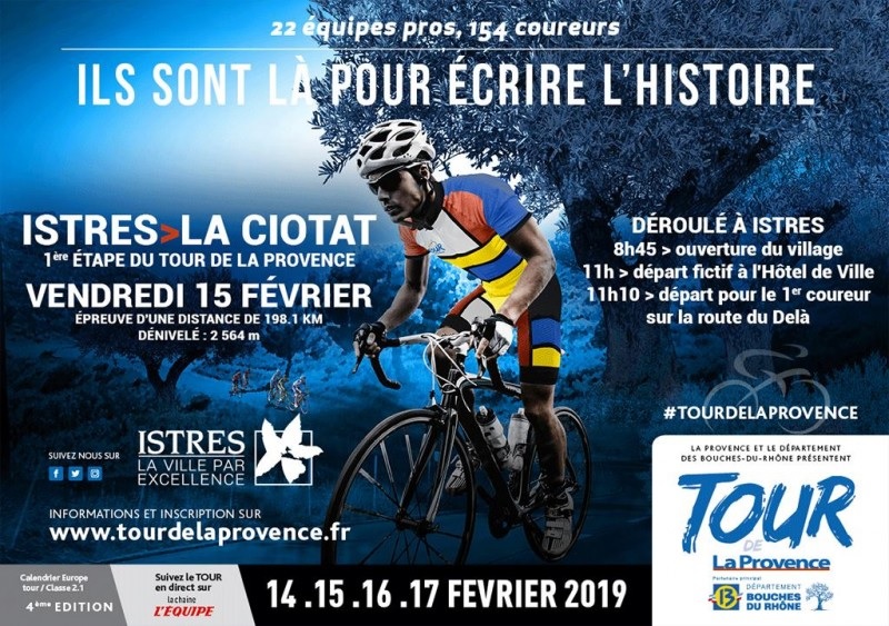 Jeudi > Dimanche « TOUR DE LA PROVENCE ». Séba a signalé qu’il était DS des « WANTY GOBERT » (BACKAERT) sur l’épreuve. Avec en plus « ASTANA » (DEVRESSE) « NATURA4EVER ROUBAIX » (DERNIES), « COFIDIS » (TOUZE), « DECEUNINCK » (GILBERT), « CORENDON CIRCUS » (JANSSENS), « DELKO MARSEILLE PROVENCE » (EL FARES), « TREK » (EG), « SUNWEB » (HAGA), … .