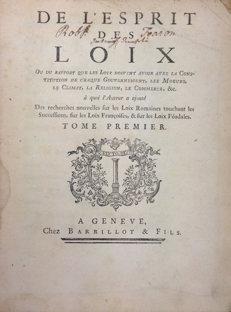 « De la loi et de l’esprit de la loi » ou encore, « L’esprit de la loi, pas la lettre » (langage commun) sont de probables émanations du livre de Montesquieu : « DE L’ESPRIT DES LOIX ». (1748) Il s’agit de nous ouvrir à la réflexion pour éviter une vision tronquée, carrée, non adaptée. Ce n’est pas du « laisser-faire » ni du « laisser-aller ». Proche du droit, de l’histoire, de la sociologie, de l’économie voire même de la philosophie, les principes politiques inspirés par l’auteur imposent de réels questionnements. Il défend ainsi une théorie originale de la loi : au lieu d’en faire un commandement à suivre, il en fait un rapport à observer et à ajuster entre des variables. A bien y regarder, l’extrapolation est possible dans bien des domaines. #Jurisprudence
