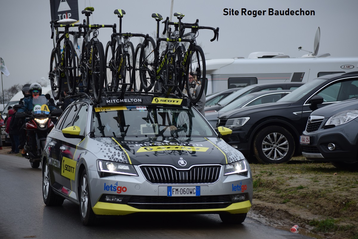 La tendance est identique ou presque, à celle de l’an dernier. SKODA remporte la palme. Le changement est peu important comparativement à 2018. Notons que SKODA est une marque Tchèque apparue sur une automobile en 1926. Depuis 1991, elle appartient au groupe VW. Étonnement, avant 1990, les européens de l’ouest n’ont jamais acheté qu’en très petite quantité ces voitures. Dans notre région, il y a eu quelques SKODA de type 100, 120 et 136. Aujourd’hui, elle a la réputation d’être solide. Pourquoi autant de SKODA dans les équipes WT … et dans le Tour de France ? Allez savoir. Une chose est certaine, les fabricants ne mettent pas un charroi, à disposition, de la même manière : usine, importateur national, concessionnaire, … . Avec ou sans participation financière. Avec ou sans restitution en fin de saison. Surprenant également, l’immatriculation. TREK (USA) a des plaques belges. SKY, (ANG) des plaques allemandes. MICHELTON (AUS) vise l’Italie. Et quand vous regardez le siège social, il est encore dans un autre pays que celui d’origine du team.
