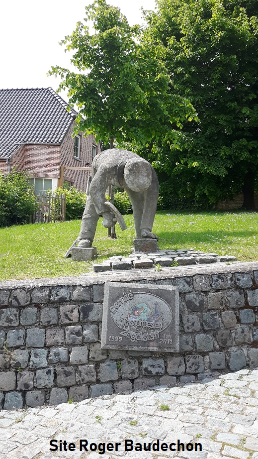 Mais que vient faire cette statue d’un paveur à côté de l’église ? En réalité, il s’agit du « Kasseilegger ». En 2011, le monument a pris place à cet endroit pour commémorer ce village fait de pavé. Il avait été en travaux depuis 2009. La statue est l’oeuvre du peintre et sculpteur DE VOS de Parike. Des fêtes locales se déroulent autour de ce thème. #SolidaritéVillageoise
