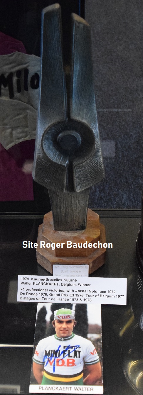 Photo. Walter PLANCKAERT, avec à ses cotés, le trophée remporté à « KUURNE-BRUSSEL-KUURNE » 1979. #ImageExceptionnellePerso