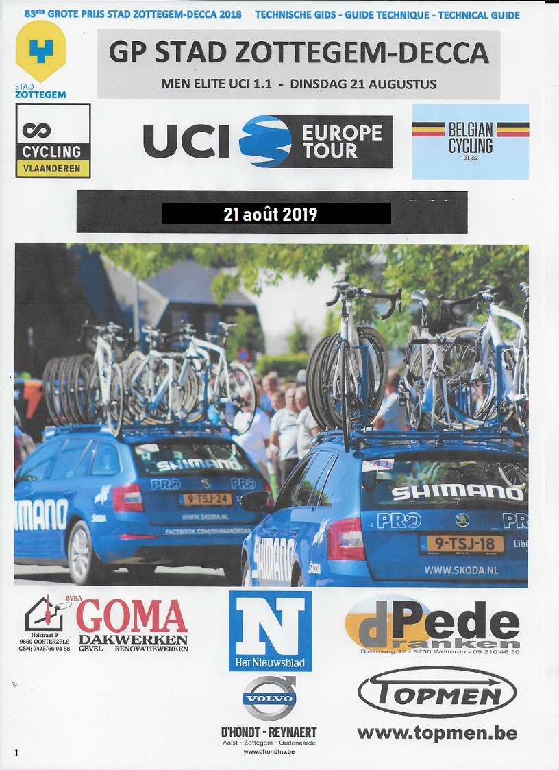Grand changement cette année !!! Nouveau lieu de départ et d’arrivée. Au « SOTTO », juste à côté de la 2 x 2 bandes reliant Grammont à Wetteren. Un village « KOERS » et toutes les facilités seront sur le même périmètre, contrairement aux années antérieures. Le but étant de viser la montée dans une catégorie supérieure et d’organiser une compétition pour les dames. Prenez note. Une grande boucle est programmée dans les environs de Zottegem. Mais 9 circuits locaux passeront toujours dans le centre ville. Départ à 12h30. Présentation des équipes au préalable.