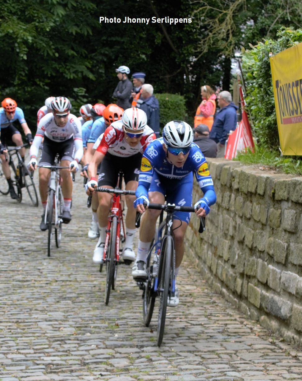 Photo. Remco EVENEPOEL est en tête lors de l’étape du Tour de Belgique (2019) qui passait au Muur de Grammont. Photo de Jhonny.