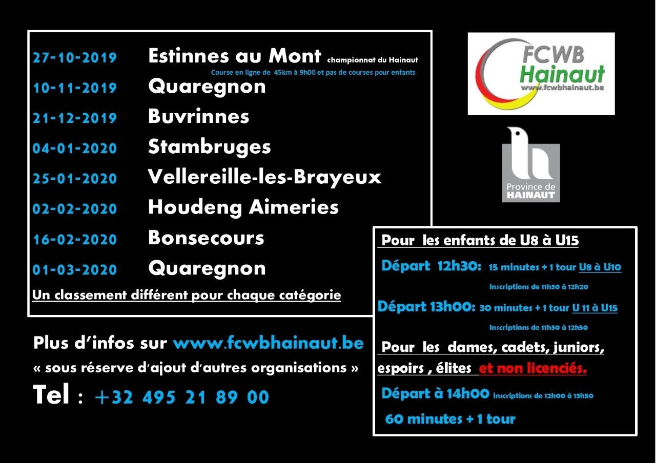 Rendez-vous sur le site de la FCWB pour connaître les modalités pratiques de ces courses. Attention, les « KIDS » sont les bienvenus. Il semble même que VTT et CYCLES DE CROSS soient admis.