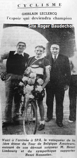 Ghislain LECLERCQ était vraiment un très grand coureur à la fin des années 1940 et au début des années 1950. Il était de Silly, au même titre qu’un autre pro de la localité, Marcel BOUVARD dont nous ferons un texte quand nous aurons un peu de temps. Il avait 68 ans lorsqu’il est décédé à La Louvière. Résumer la carrière de Ghislain, que nous avons très bien connu – il était souvent avec le paternel sur les courses – n’est pas facile. Nous avons énormément de documentation le concernant mais elle est éparpillée. Les grands sites cyclistes l’ont peu détaillé. Un tort. Voici donc un premier jet. Nous en ferons un autre dans le futur car il mérite bien qu’on s’attache à ses exploits. Avant toutes choses, mettons Ghislain LECLERCQ en lumière. Il a fait partie de l’Armée Secrète et avec ses amis du Maquis de Saint-Marcoult, il allait ramasser les « containers » lancés par des avions amis durant la guerre. (1940-1945) Un dur. Et puis, le cyclisme est devenu une passion dévorante. Petit, râblé, mais costaud. Avec un nez de boxeur, il ne craignait pas grand monde. Amateur, il fut très bon. La photo d’entête le présente comme vainqueur d’étape (SPA) sur le Tour de Belgique pour les purs. (13/06/1948) Il a été indépendant un moment. Il a gagné « BRUXELLES-SAINT/HUBERT » en 1949. Et puis, il est passé professionnel de 1950 à 1953, chez : « ELVE-METEOR », « GARIN-WOLBER » et « TERROT-HUTCHINSON ». Il a fréquenté : CLOSE, MATHIEU, MEULENBERG, VAN ENDE, Giuseppe CERAMI (pas encore Pino), BOLLY, LAVEAUX, DE CORTE, DIEDERICH, DEPREDOMME, DETELEER, LERNO, PETERS, SCHILS, SORGELOOS, VAN NEST, STERCKX, BRAEKEVELT O, CALLENS, COUVREUR, DE GRIBALDY, DESMET R, JOBE, MAHE, ROSSEEL, SMET, VERSCHUEREN, BARATIN, DE MULDER, GAUL, NICOLLET, ROBIC, TAILDEMAN, WIJNS, … . De ses résultats, retenons qu’il a roulé de nombreuses classiques dont « PARIS-BRUXELLES 1953″ qu’il termine 54e. PETRUCCI gagne cette épreuve longue de … 302 km en 08h32′ 53 ». Et oui !!! Pour le second post, nous aurons une liste plus complète.