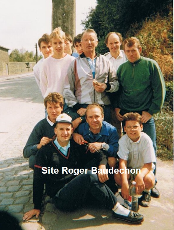Photo. Les « 4 AS » en +/-1985. Patrick, Fernand, Paul, Rudy, Bibi, Dédé, Grégory, Lucien, « el boulangie », le fiston à André Devuyst, … . Nous n’avions pas de règles (club non structuré) mais nous nous respections tous les uns les autres.