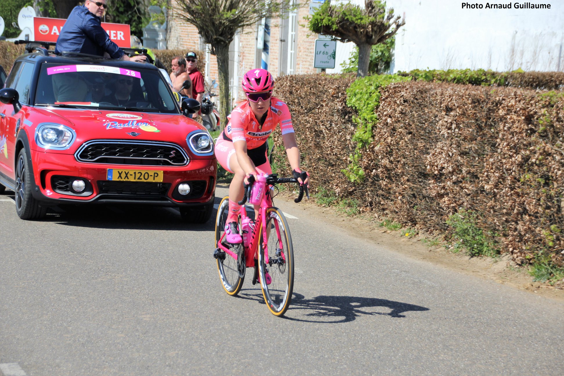Photo. Arnaud aime bien l’équipe BOELS !!! 😉 Notez que voilà une dame qui a compris que rouler seule était la juste mesure à prendre en ce moment.