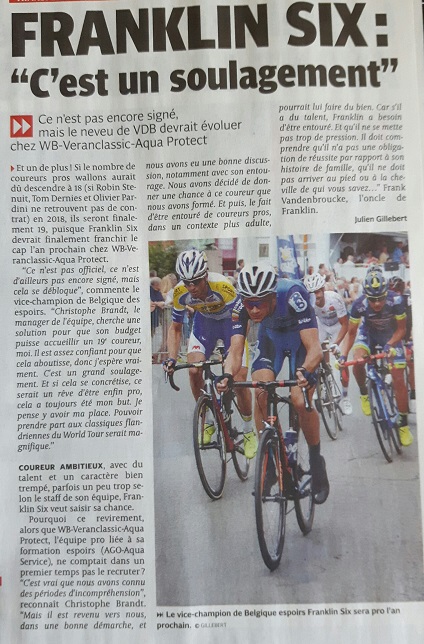 N.B : Quand nous pensons à SIX, nous pensons à André DEVUYST, alias « El Crol », qui était un fan de Sébastien, le papa de Franklin. Un mordu de vélo qui est parti trop tôt.