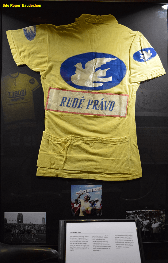 Le leader de « LA COURSE DE LA PAIX » portait cette tunique. Marcel MAES est le seul belge qui ait remporté cette épreuve en 1967. Nous signalerons les podiums de CLAES, VAN MEENEN, VANDERVEKEN, VANDEN BERGHEN, VERHAEGEN, VYNCKE. Une épreuve hors du temps !!!