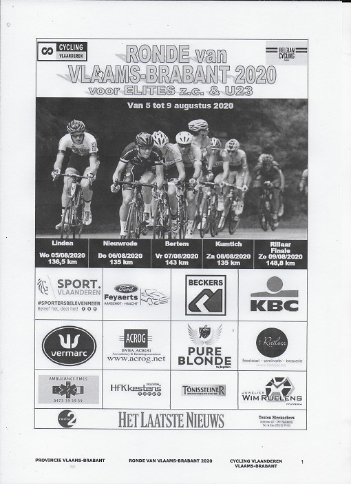 Le « TOUR DU BRABANT FLAMAND » débute ce mercredi 05/08/2020 et se terminera le 09/08/2020. Voici les étapes :