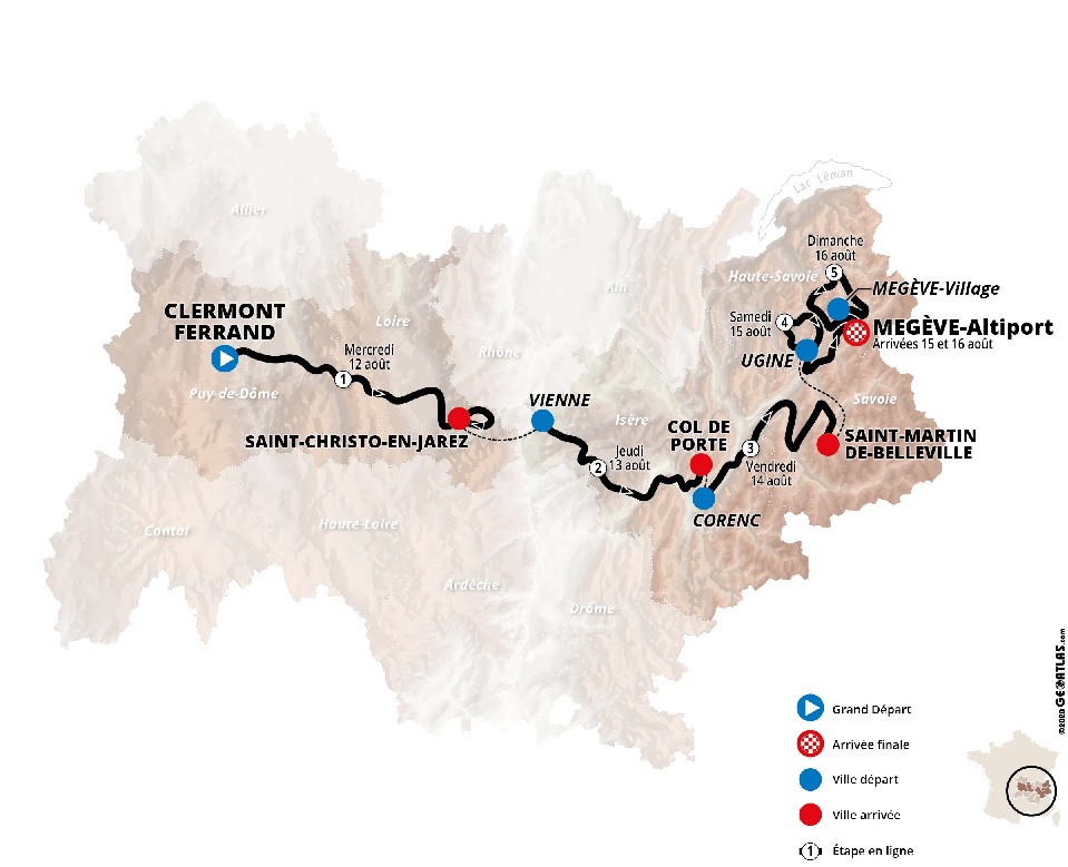 Image. Le parcours du « DAUPHINE ». 12 au 16/08/2020. (5 étapes)