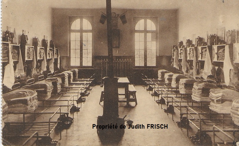 Cette carte est envoyée par « Louis » à son copain « Georges DESMECHT » (« El fin chal’) alors Soldat au 1er Régiment des chasseurs à pieds, 3eme Bataillon, 12eme Compagnie, caserné à Mons. C’est le grand-père de notre équipière site, Judith FRISCH. Cachet et timbre datent de 1931. (sous réserve) Elle a été envoyée de la caserne de Tournai à celle de Mons. Les militaires recevaient (de ce qui nous a été rapporté) des livrets desquels ils détachaient les cartes postales. Nous possédons d’ailleurs des carnets de l’HNDR. Celle-ci présente la caserne du 3eme Régiment à pied de la Citadelle de Tournai où se trouvait « Louis ». La carte vous permet de voir dans quoi étaient logés les militaires. La chambre des troupes de la 1ere Compagnie. Nous ne donnerons pas le texte qui leur est personnel, tout comme cette carte dont la reproduction est interdite. Propriété de Judith FRISCH. Elle n’est ni à vendre, ni à donner.