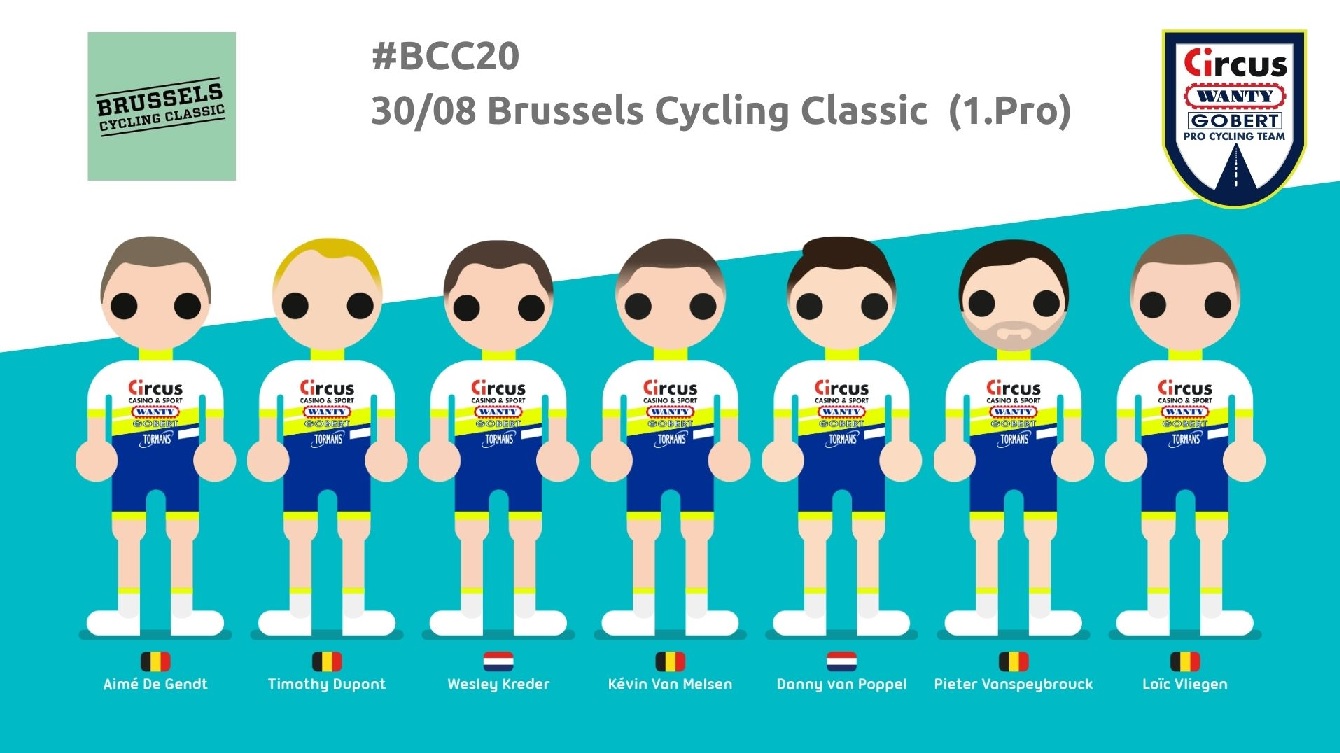 JhonnyS nous signale que c’est un peu l’infirmerie chez « CIRCUS WANTY GOBERT ». (HERMANS, VAN POPPEL, …) Il faut dire qu’un effectif n’est pas extensible à l’infini. Voici donc, pour la belle classique du jour, ceux qui ont été retenus, pour mettre le maillot en évidence. Attention, c’est en TV.