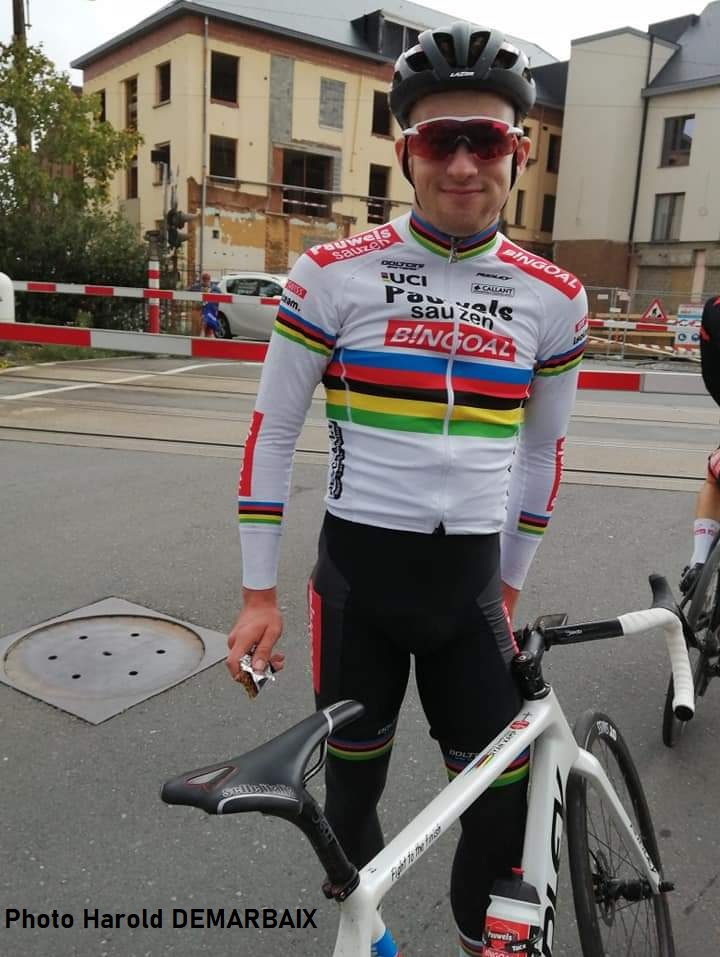 Ce jour, HaroldD était à l’arrêt devant le passage à niveau de la Rue de Jeumont et devant lui, un champion du monde de cyclo cross. Il s’agit de Ryan KAMP (19 ans). Le coursier est champion du monde des espoirs (avec contrat pro) et fait partie de l’équipe « PAUWELS SAUZEN – BINGOAL ». Une bonne occasion de mieux connaître ce citoyen de Herenveen aux PAYS-BAS. Il est en préparation de la saison hivernale. Il était accompagné de deux équipiers, dont une vedette internationale. Trois fiches sont en préparation pour la semaine prochaine. Merci grandement à HaroldD pour son initiative. Une belle image. Lessines … ville de passage.