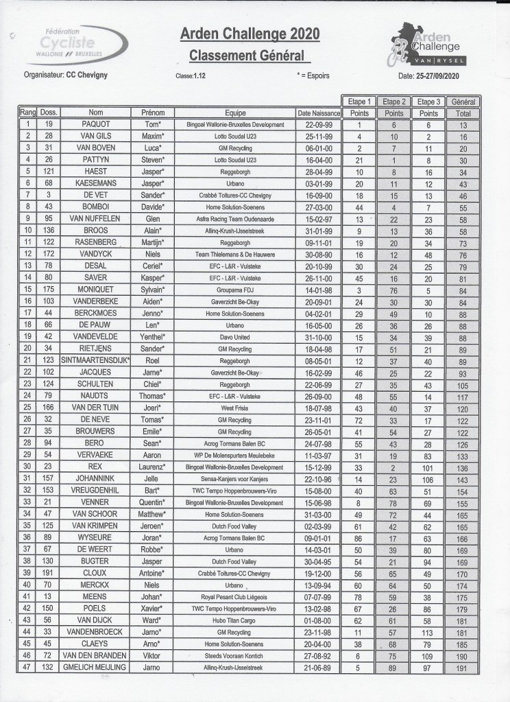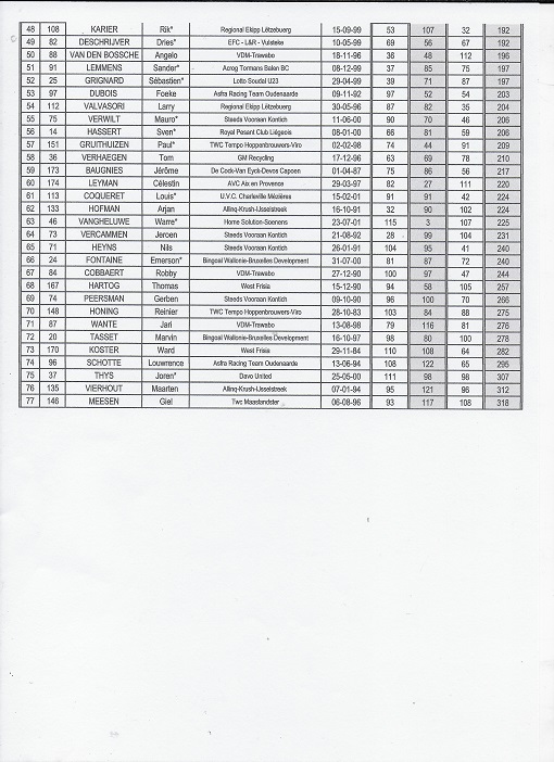 ETAPE 3 : 1 VAN TRICHT 2 VAN GILS 3 DOPCHIE … 5 MONIQUET 6 PAQUOT 8 PATTYN 21 RIETJENS 28 BERO S 56 BAUGNIES 69 VENNER 72 FONTAINE 87 GRIGNARD …