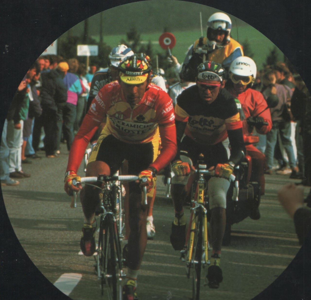 MichelF nous transmet une belle image du champion local Claudy CRIQUIELION. Il veut nous mettre dans l’ambiance. Mais il nous retourne aussi le couteau dans la plaie. Le champion de Belgique terminera second derrière un ARGENTIN (4 victoires sur la classique) complétement démonté. Et bien aidé par son équipier SORENSEN.