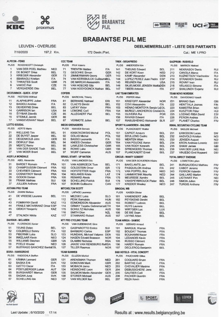 Liste des partants.