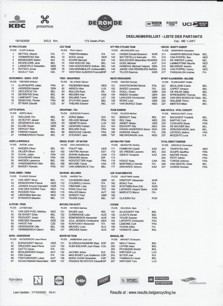 « RTBF » dès 09h30 sur la 2 et ce toute l’avant-midi. Sur le 1 dès 13h30. A 16h35, les dames. Du VTT est programmé juste en début d’avant-midi.
