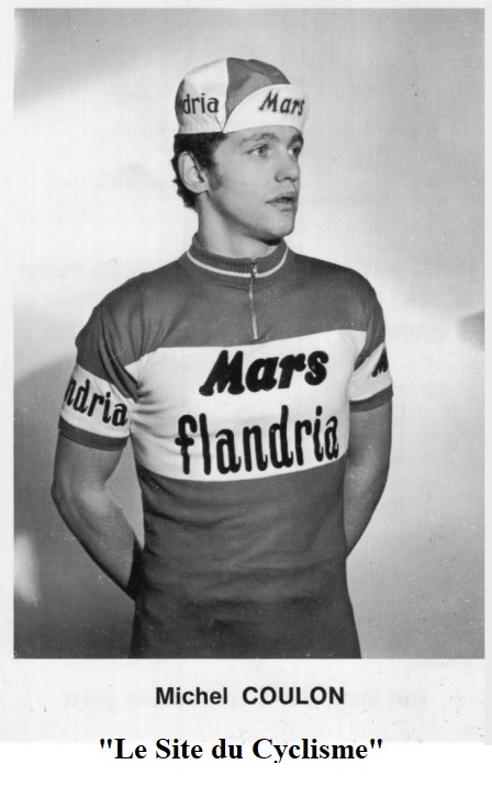 Voici un coureur de la région de Charleroi. Il y en a eu un paquet dans le « PAYS NOIR ». Cette fois, c’est au tour de Michel COULON, originaire de JAMIOULX. Il a 73 ans. Jamioulx, la cité qui organisait les motocross de Joël Robert. COULON aura été professionnel de 1968 à 1973 dans les équipes suivantes : « FLANDRIA » et variantes, « WATNEY » et variantes. Deux très belles équipes dans lesquelles il aura côtoyé : CAPIAU, CORNET, FORE, GODEFROOT, MAHIEU, MONTEYNE, RASSON, BODARD, les DAVID, les DE VLAEMINCK, DIERICKX, LEMAN, MONSERE, VAN MARCKE, ZOETEMELK, DEBUYSSCHERE, OMLOOP, PLANCKAERT W, VAN MALDEREN, VERBEECK, LOYSCH, VAN CONINGSLOO, VAN SWEEVELT, … . A son actif, il a quatre participations au « TOUR DE FRANCE » (une étape par équipe). Il a remporté neuf courses dont SOIGNIES. Des étapes au « TOUR DU LIMBOURG » et au « TOUR DE L’AVENIR » ainsi que le classement général de « L’ETOILE HENNUYERE ». Et petite cerise sur la gâteau, il a fait 3eme à DEUX-ACREN chez les amateurs. Souvenons-nous !!!! Pour plus d’informations, n’hésitez pas à visiter « LE SITE DU CYCLISME ». Une véritable source d’informations où les contributeurs font cela GRATUITEMENT.