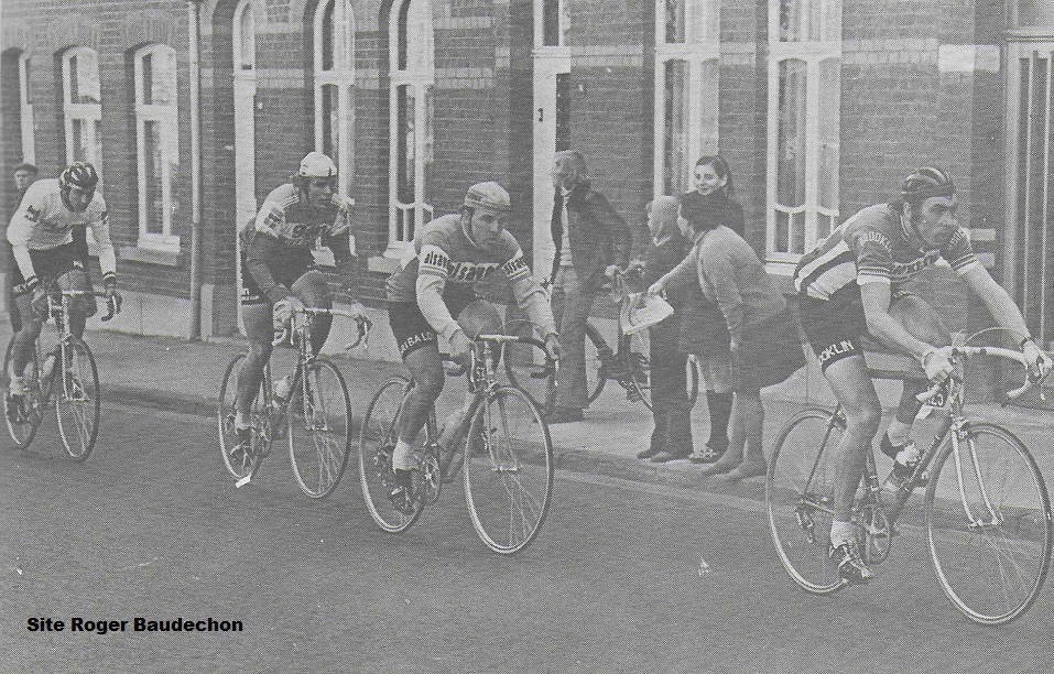 Libert nous ayant beaucoup aidé de diverses manières, c’est un juste retour des choses que de lui publier des images de coureurs qu’il a connu et surtout qui ont été d’une aide précieuse pour Pascal PIT dans le « PCW ». Alors, voici une image de Bernard DRAUX sur « GAND-WEVELGEM ». Il se trouve en compagnie de SERCU, LEMAN et BAL. Bernard DRAUX était aussi un coureur de classique … ne l’oublions pas !!!