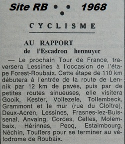 A moins de nous tromper, nous avons eu trois passages du « Tour de France » dans Lessines. (deux fois dans le centre et une fois sur le Boulevard) Un post est d’ailleurs rédigé à ce sujet sur ce site avec photos d’époques. Mais cette fois, nous avons retrouvé l’itinéraire emprunté. Il faut dire qu’au milieu de nos +/- 5.000 images du « LE POSTILLON », il faut arriver à tout retrouver et ce même si c’est classé. Les tournaisiens vont être heureux (lol) de constater que tout a été fait pour éviter la cité des cinq clochers. Pour une fois, Lessines avait eu les honneurs. 😉