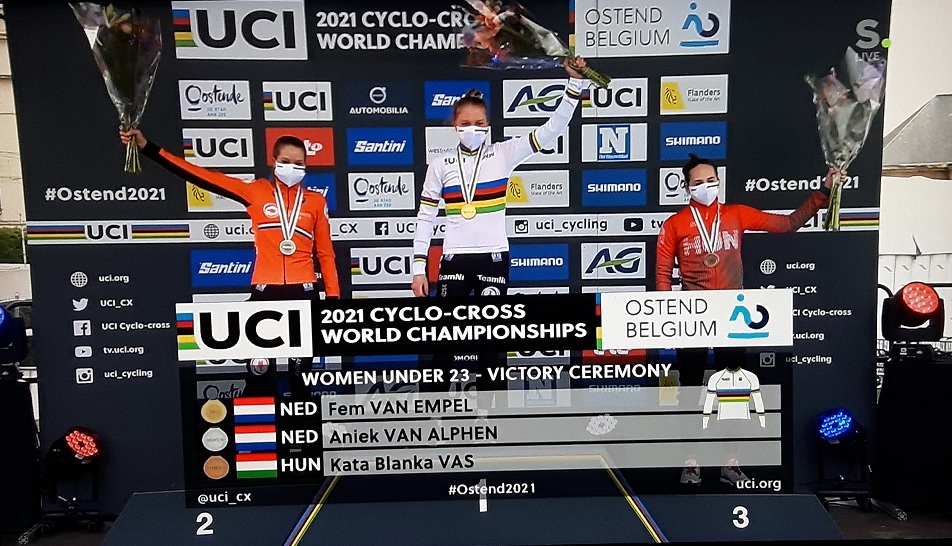 VAS était la favorite de la plupart des observateurs. MAIS, elle a beaucoup roulé cet hiver avec les élites et surtout, elle a été confrontée à une coalition de néerlandaises qui ne lui ont pas fait de cadeau. Pourtant, cette jeune HONGROISE aurait eu belle allure avec le maillot arc-en-ciel !!! La loi du sport est dure mais c’est la loi. La vie n’est pas différente, les meilleures émergent, quelques fois sans que la logique ne soit respectée. Chez les dames, nous avons assisté à une épreuve pleine de suspens. Une première compétition dominicale qui s’est tenue sous un beau soleil (à la côte belge) et avec la présence d’une foule des grands jours. Qui a dit que la plage était interdite ?