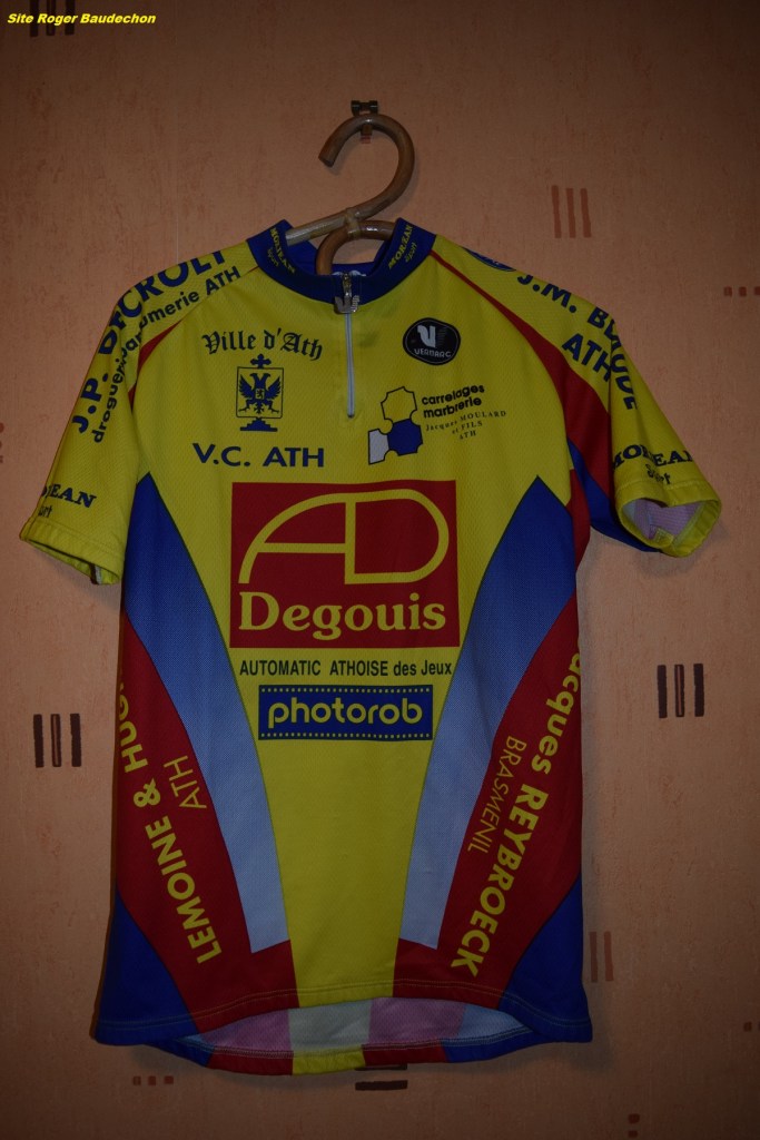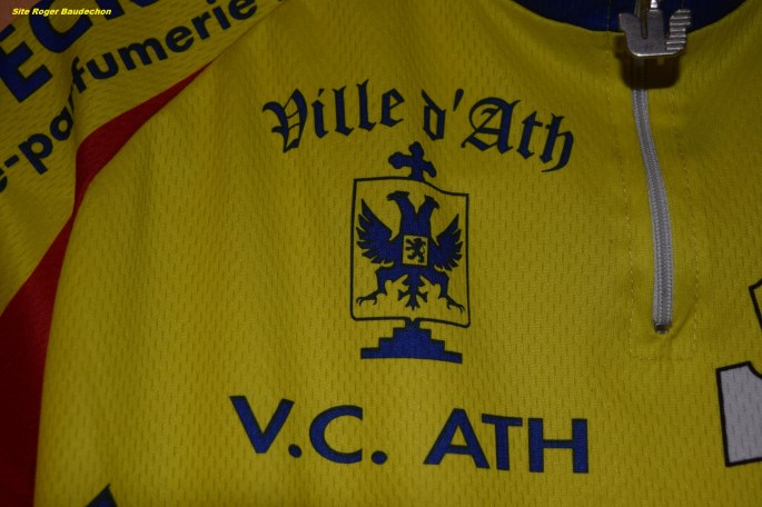 Merci à Eric SOYEZ pour ce superbe maillot qui date de l’époque du « VC ATH ». Une époque intermédiaire entre celle de l’UC du PAYS D’ATH et celle de « STOREZ ». Notre collection de maillots commence à prendre du volume !!! Le « VC ATH », un des noms du club d’Ath avant qu’il ne prenne de l’ampleur et ne se dirige vers « WANTY-GOBERT ». Mr FROMONT, contactez-nous, nous vous donnerons des informations complémentaires à votre travail sur l’historique du club athois. Nous avons finalement récupéré un très beau maillot via Eric !!! MERCI.