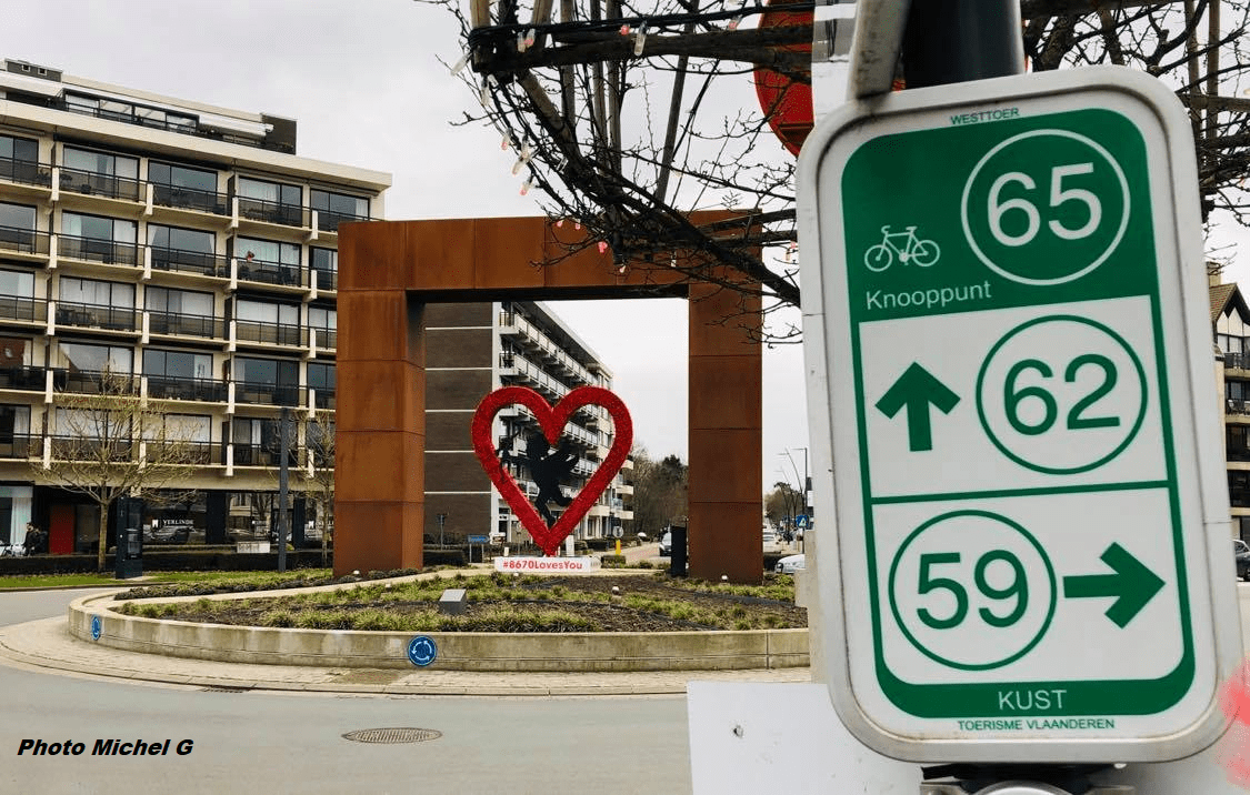 L’entrée de KOKSIJDE. A la côte, les « fietsknooppunten » (points nœuds) sont organisés pour vous faire profiter au maximum des particularités locales. Merci à MichelG pour l’image. Un utilisateur des circuits proposés à la mer. Possibilité d’encoder les numéros dans un ordinateur de bord. (compteur)
