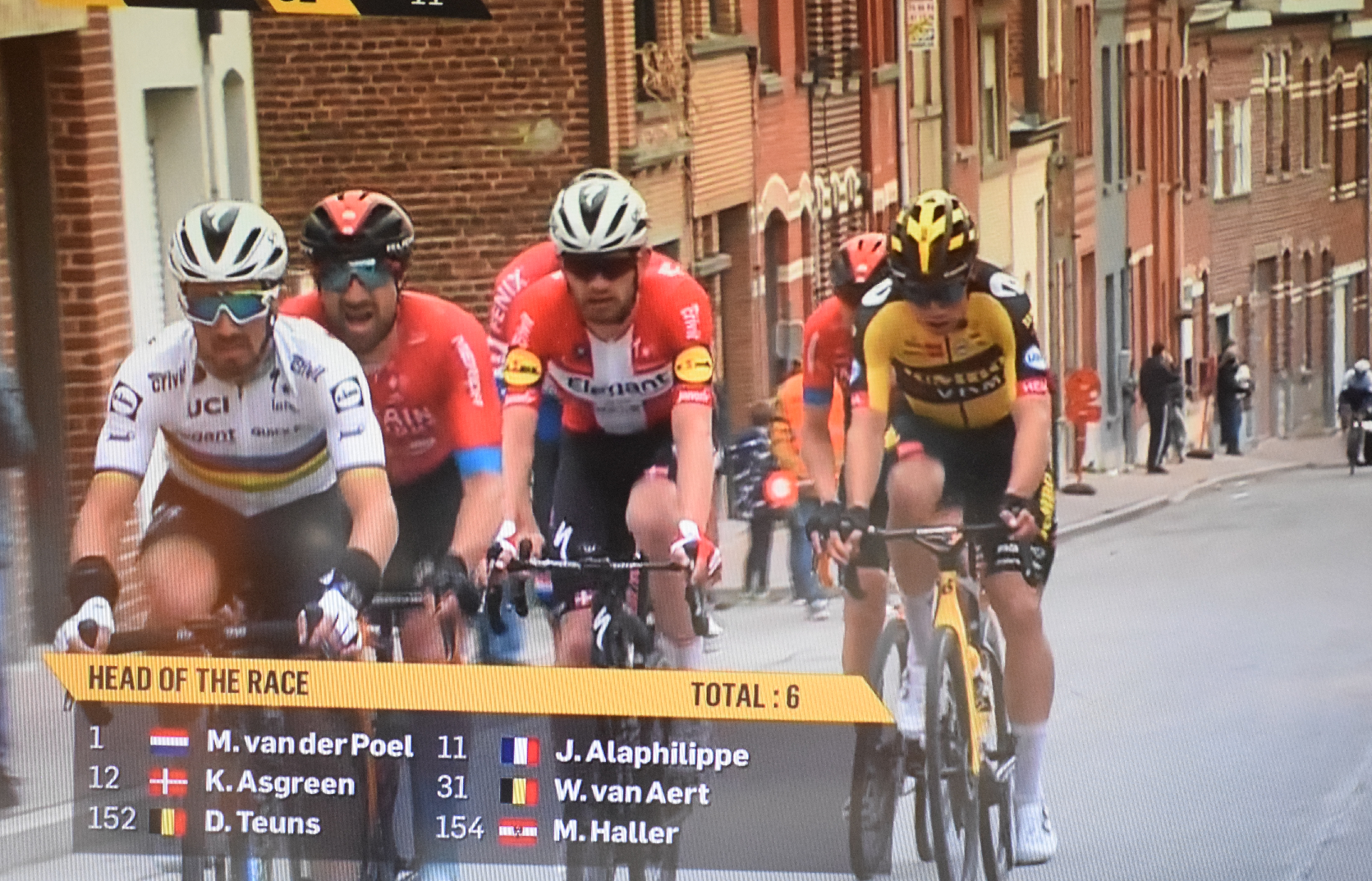 Un « RONDE » avec ou sans COVID, reste toujours une fameuse épreuve. Une belle échappée. Des prétendants au rendez-vous. Et comme nous l’avions signalé, « DECEUNINCK-QUICK STEP » une fois absent, une fois présent. Un retour au premier plan de WALLAYS et de BENOOT. Une nouvelle présence de « BINGOAL-WALLONIE BRUXELLES » avec PAASCHEENS. Les français LAPORTE, ALAPHILIPPE, SENECHAL, COQUARD, HOFSTETTER, … sur la devanture. Mais surtout un TURGIS qui mériterait d’en gagner une de premier choix, lui qui est devant depuis des semaines. Peut-être un peu trop volontaire. Finalement, encore Gianni VERMEERSCH dans le bon. Un dernier groupe fait de ceux qui étaient attendus. VAN AERT pas à 100% lâche prise. HALLER et TEUNS mais aussi MADOUAS et BEULLENS, des surprises. ALAPHILIPPE qui manque de jus mais qui sera là dans huit jours. VAN DER POEL pareil à lui-même qui se donne trop et qui paie les pots cassés. Pour terminer, un Kasper « le fantôme » ASGREEN très impressionnant mais aussi très malin. Il est un peu dommage de ne pas avoir beaucoup vu les « INTERMARCHE-WANTY-GOBERT ». VAN POPPEL Danny a fait illusion. Chez « TREK-SEGAFREDO », STUYVEN pouvait faire un podium. Greg VAN AVERMAET est tout de même un fameux bonhomme. 3e d’une classique pour « AG2R – CITROEN », une recrue de choix pour l’équipe française. Triste pour les « LOTTO-SOUDAL » qui peinent à se trouver un leader. WELLENS faisant de son mieux. Bonus + à « ISRAEL ACADEMY » et bonus – à BETTIOL qui n’est pas (encore) dans le (bon) coup.