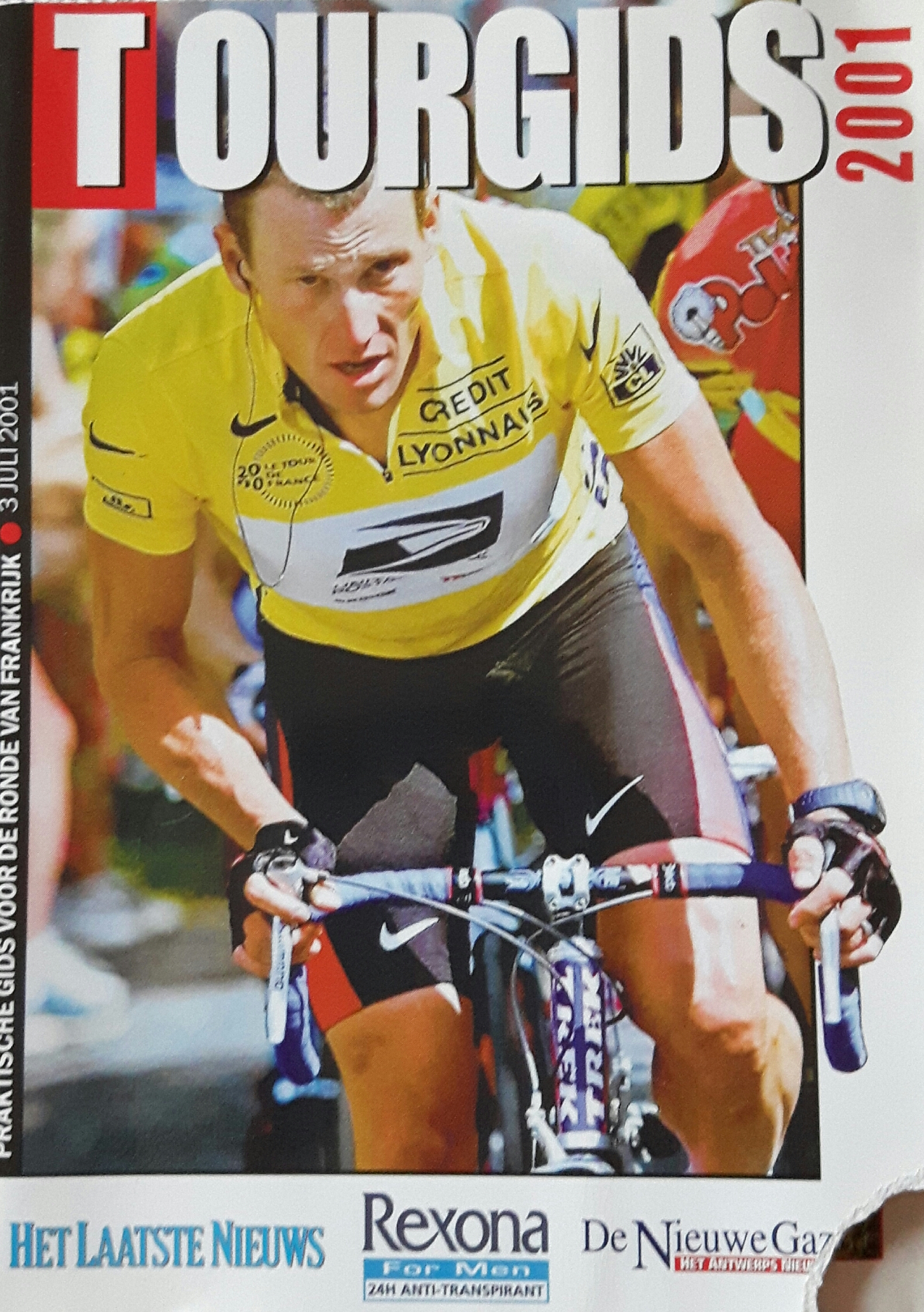 Photo. L’entête du livret consacré au « TOUR DE FRANCE » 2001. Reçu à Ostende avec un journal néerlandophone. Gratuit.
