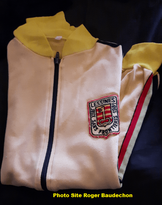 Les « anciens » savent de quoi il s’agit. Pour les plus « jeunes », nous n’en sommes pas totalement certains. Ce n’est pas un training « cycliste ». C’est bien entendu la veste sportive que nous portions lors des « JEUX SANS FRONTIERES » de 1981. 40 années se sont écoulées depuis lors et presque rien n’est effacé de notre mémoire – le bon comme le mauvais. Et oui, nous avons toujours cet accessoire. Il est dans un très bon état !!!! (vous pouvez copier la photo, vous ne devriez plus voir une veste identique avant longtemps) Nous possédons énormément de gadgets et de cadeaux qui nous ont été remis lors de ces deux « JSF ». Si un jour, nous avons un nouveau musée communal (ce que nous espérons), nous pourrions la donner pour rappeler cette magnifique épopée des lessinois à Annecy/France. Ainsi qu’à Belgrade/Yougoslavie. Ce déplacement en pays communiste fut magique. Les voyages forment vraiment la jeunesse. Par ailleurs, représenter sa Ville, son Pays … fut un véritable HONNEUR. Et si Guy LUX et Simone GARNIER (+ Paule HERREMAN – RTB) revenaient pour créer les « JSF » seniors !!!! Sûr, nous nous inscririons dans la minute. #EnModePréparation