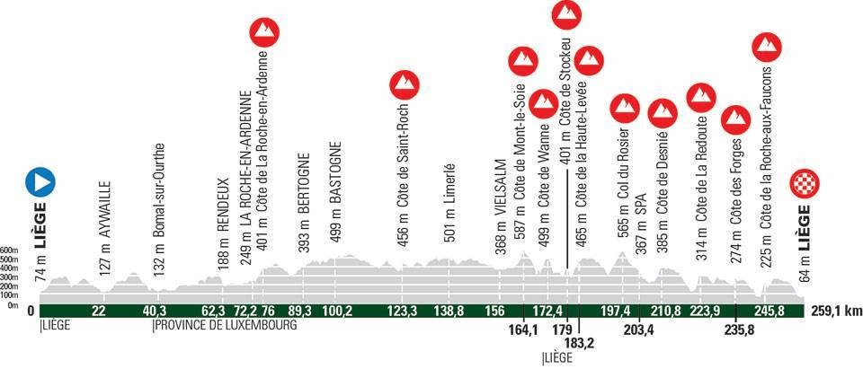 Km 76,0 : Côte de La Roche-en-Ardenne (2,8 kilomètres à 6,2% de moyenne) – Passage vers 12h12